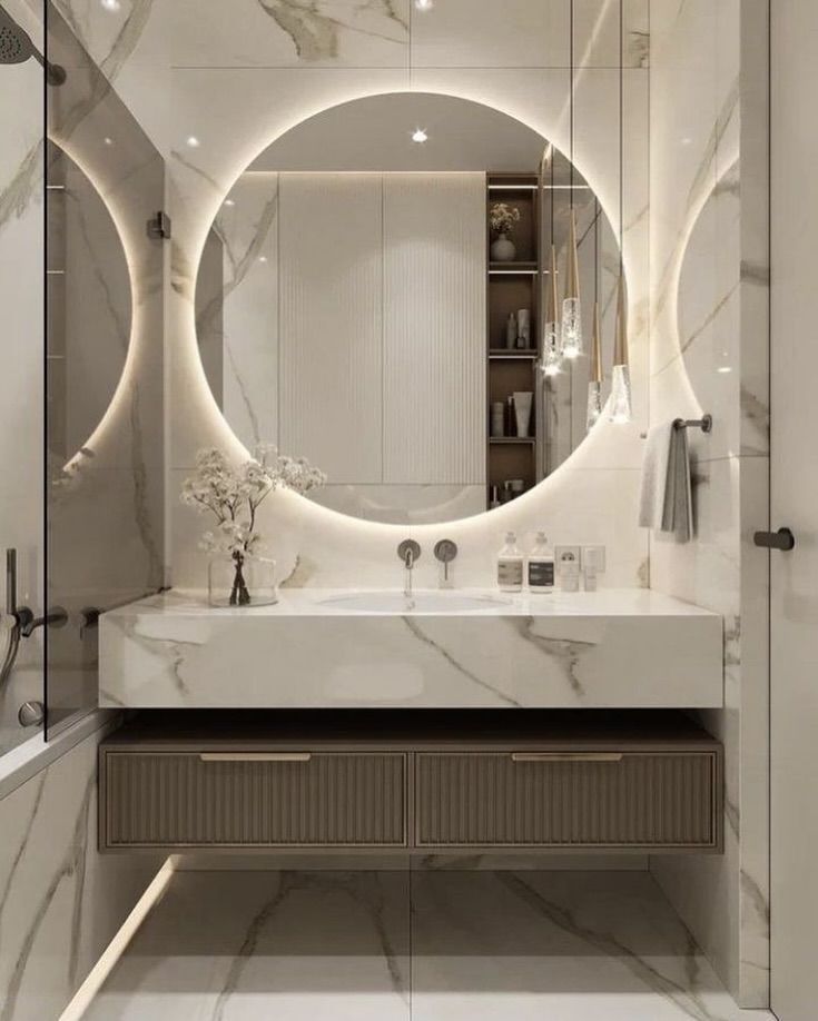 مغسلة رخام صناعى ابيض معرق بلون جراي