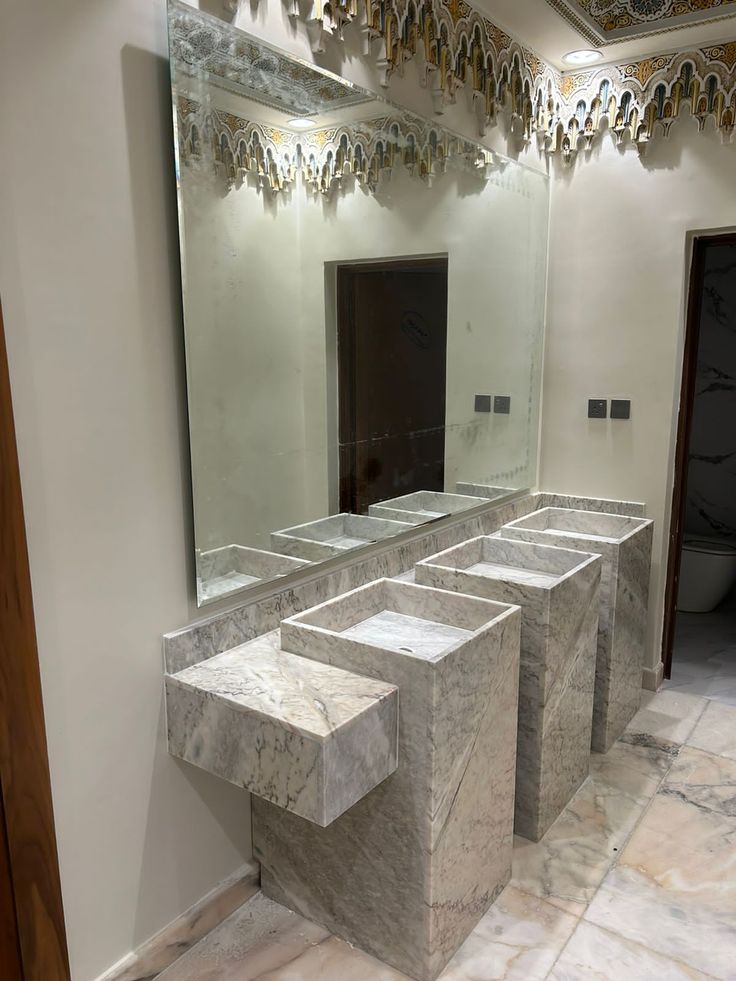 مغاسل تندار جراي رخام طبيعى تصميم 3احواض مربع